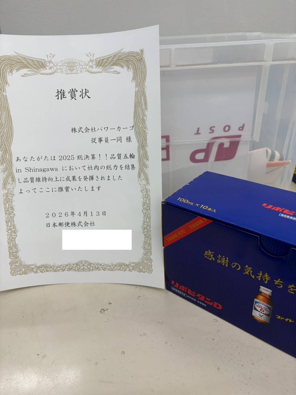 宅配が多く、Amazonや楽天セールの時は荷物が多くなるエリアでの2年連続の表彰は
